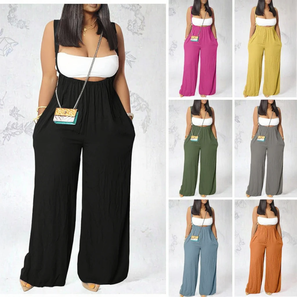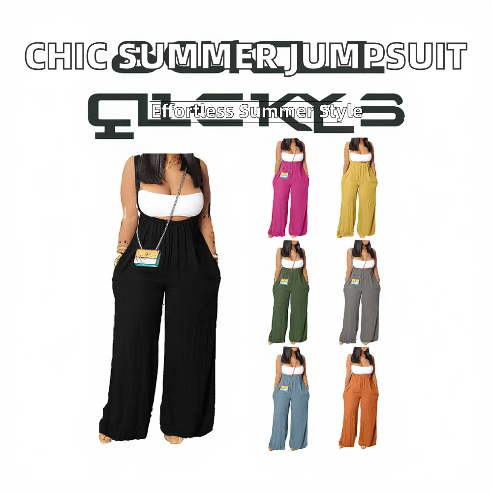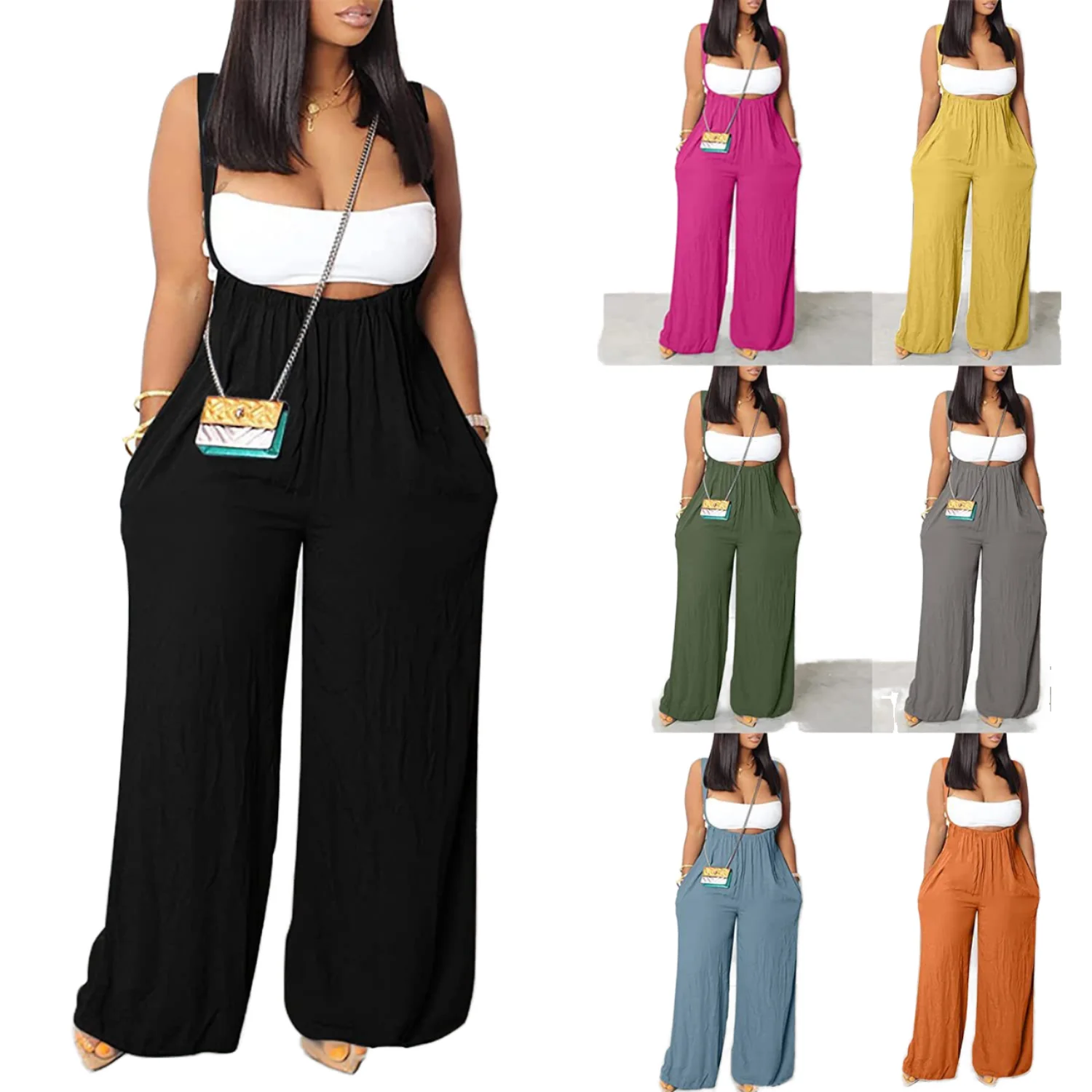 Summer Loose Casual Solid Breathable Spandex/Cotton Eco-Friendly Knitted Tights for Women Sexy Wrapped Chest Suspender Wide Leg